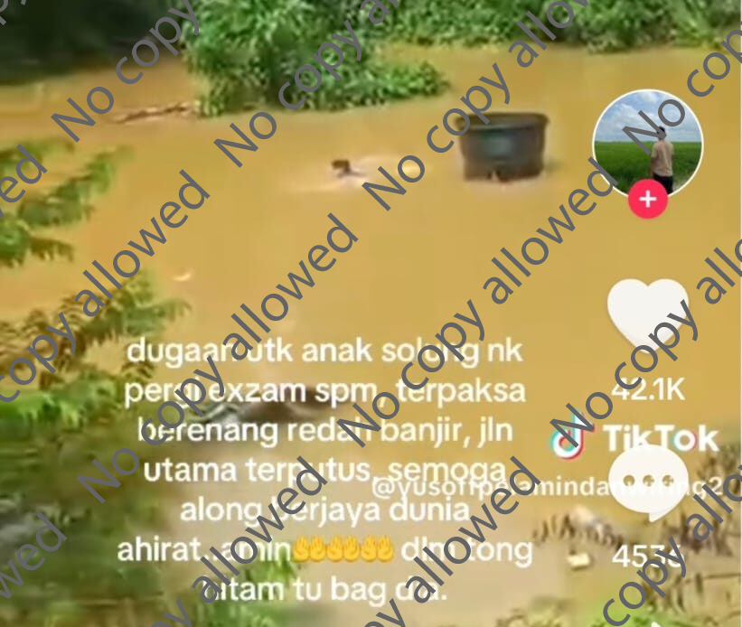 Sebelum ini tular satu rakaman video berdurasi 53 saat seorang remaja lelaki dipercayai pelajar sekolah berenang dalam kawasan dinaiki air dan seorang lelaki lain dipercayai bapanya turut berenang merentasi banjir sambil menolak satu tong hitam besar berisi beg sekolah milik remaja berkenaan, – KOSMO! ONLINE |