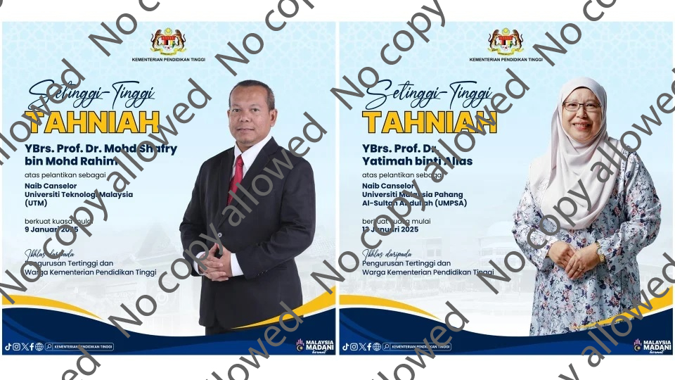 Menerusi kenyataan sama, KPT merakamkan penghargaan dan terima kasih kepada Ahmad Fauzi dan Yusserrie atas jasa dan bakti sepanjang menerajui UTM dan UMPSA. - BERNAMA |