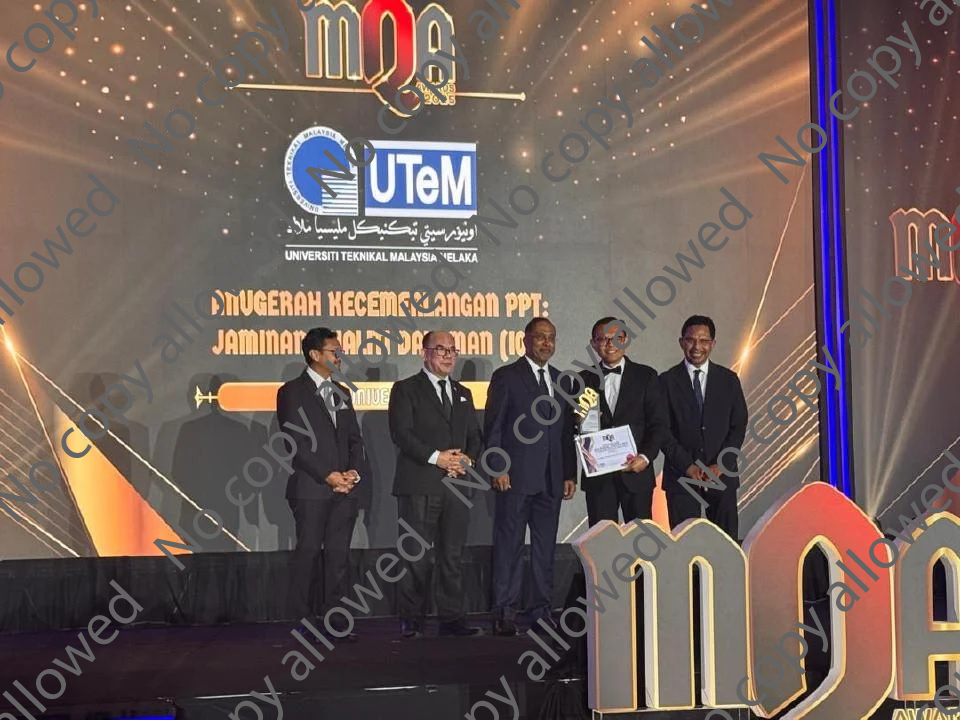 | AYER KEROH: Universiti Teknikal Malaysia Melaka (UTeM) di Durian Tunggal, dekat sini, terus mempamerkan kecemerlangan apabila memenangi Anugerah Kecemerlangan PPT: Jaminan Kualiti Dalaman (IQA) pada Majlis Anugerah Agensi Kelayakan Malaysia (MQA) 2025, baru-baru ini.