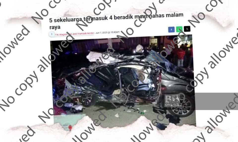 "Hasil siasatan dan berdasarkan keterangan saksi mendapati nahas dipercayai berlaku apabila Perodua Bezza yang terbabit kemalangan itu membuat pusingan U di simpang berhampiran beberapa premis perniagaan di kawasan berkenaan.