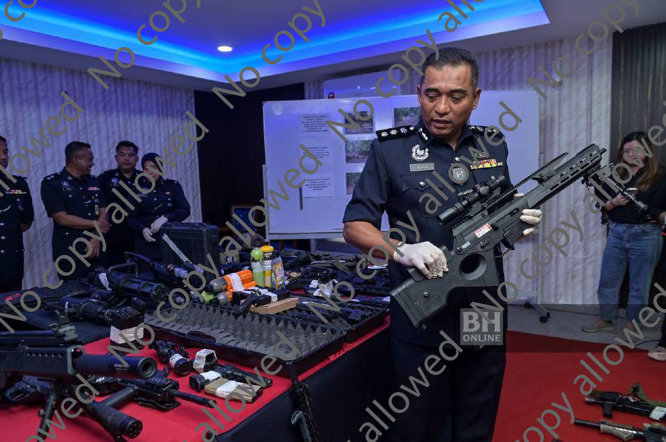 "Hasil operasi itu, sebanyak 406 unit pelbagai jenis senjata api tiruan dan aksesori dirampas di tanah rizab Tentera Laut Diraja Malaysia (TLDM) yang belum dibangunkan.